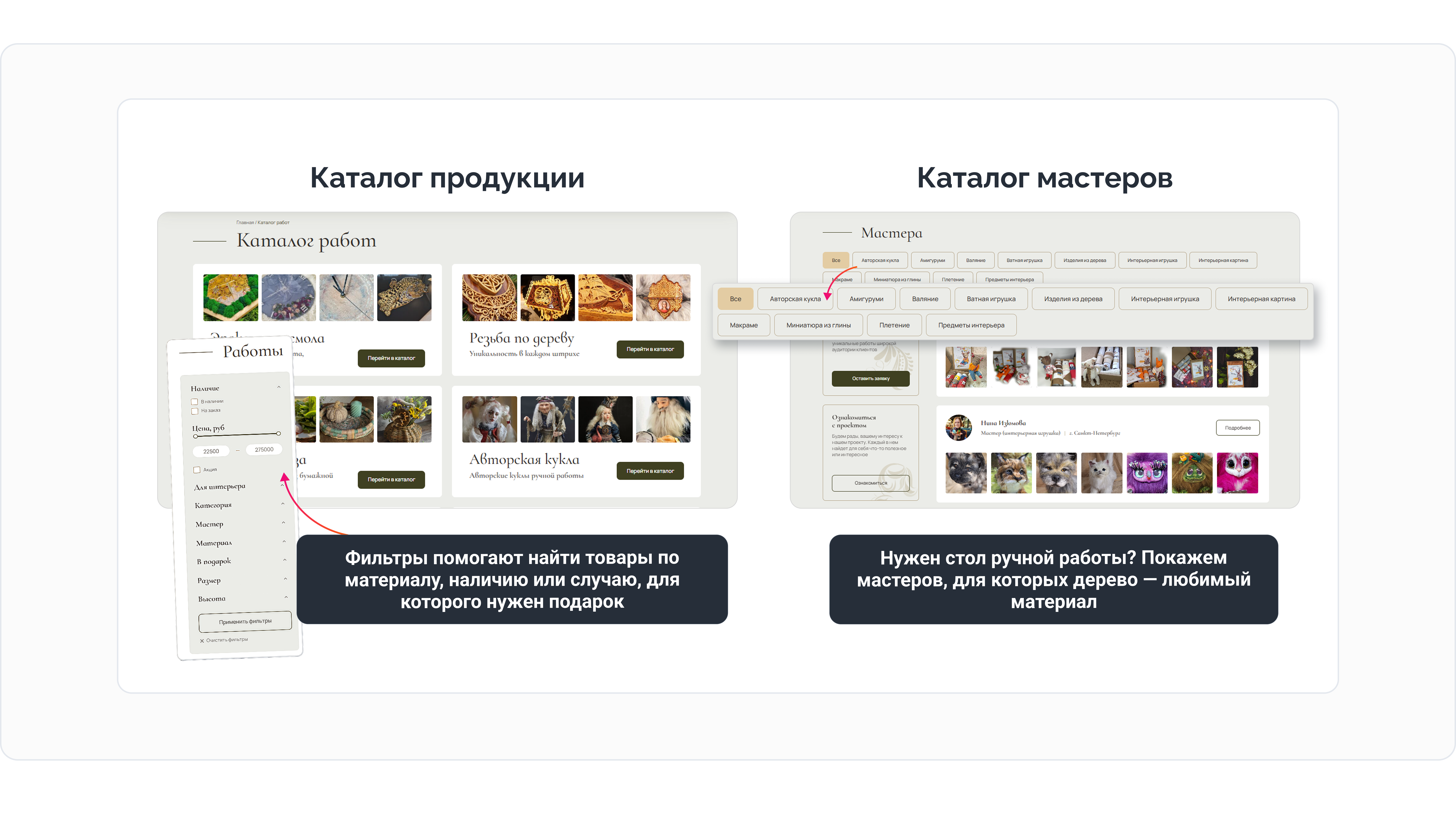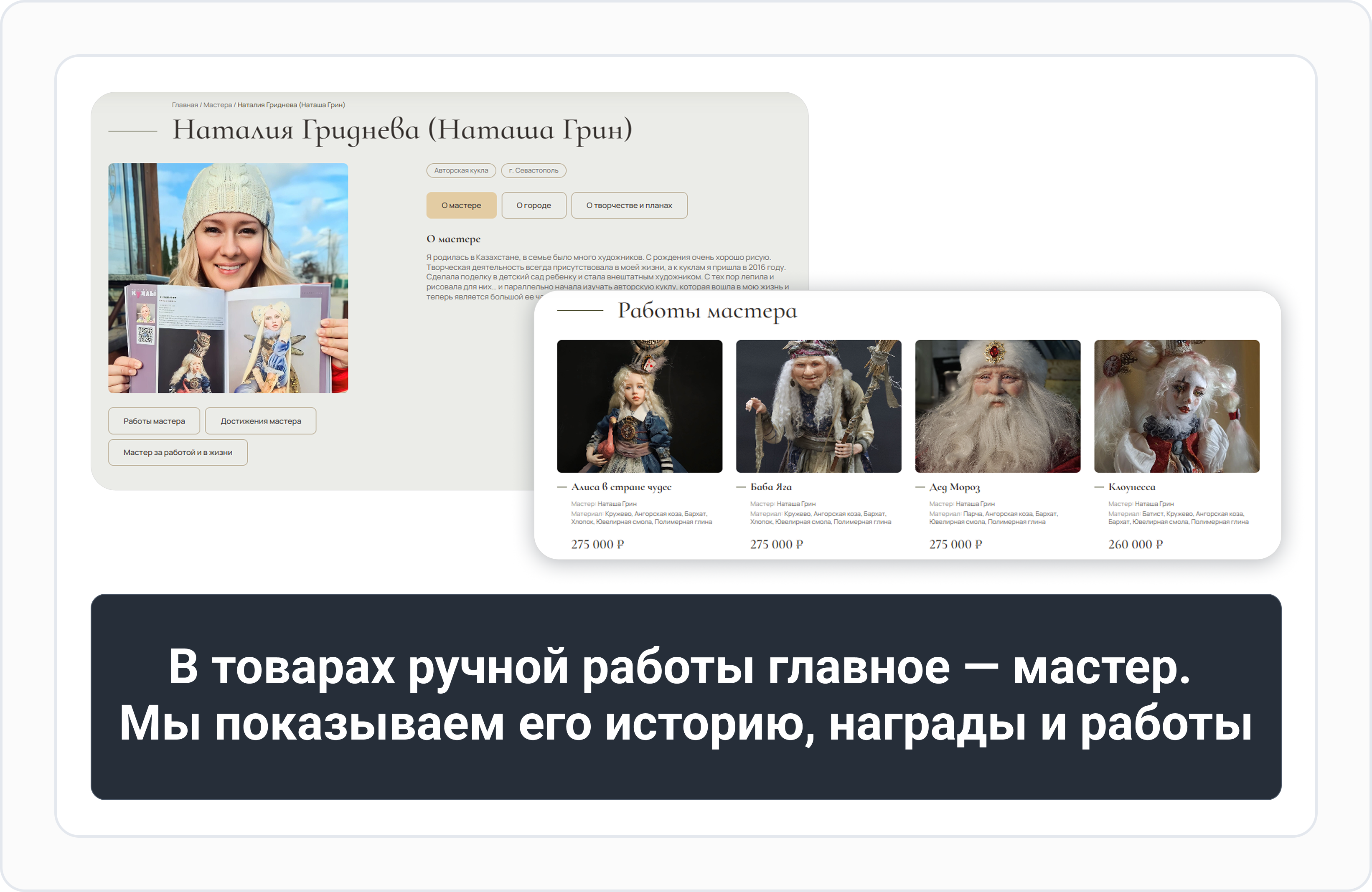 Это помогает покупателям увидеть, кто стоит за каждым изделием, и выбрать товар не просто глазами, а сердцем.